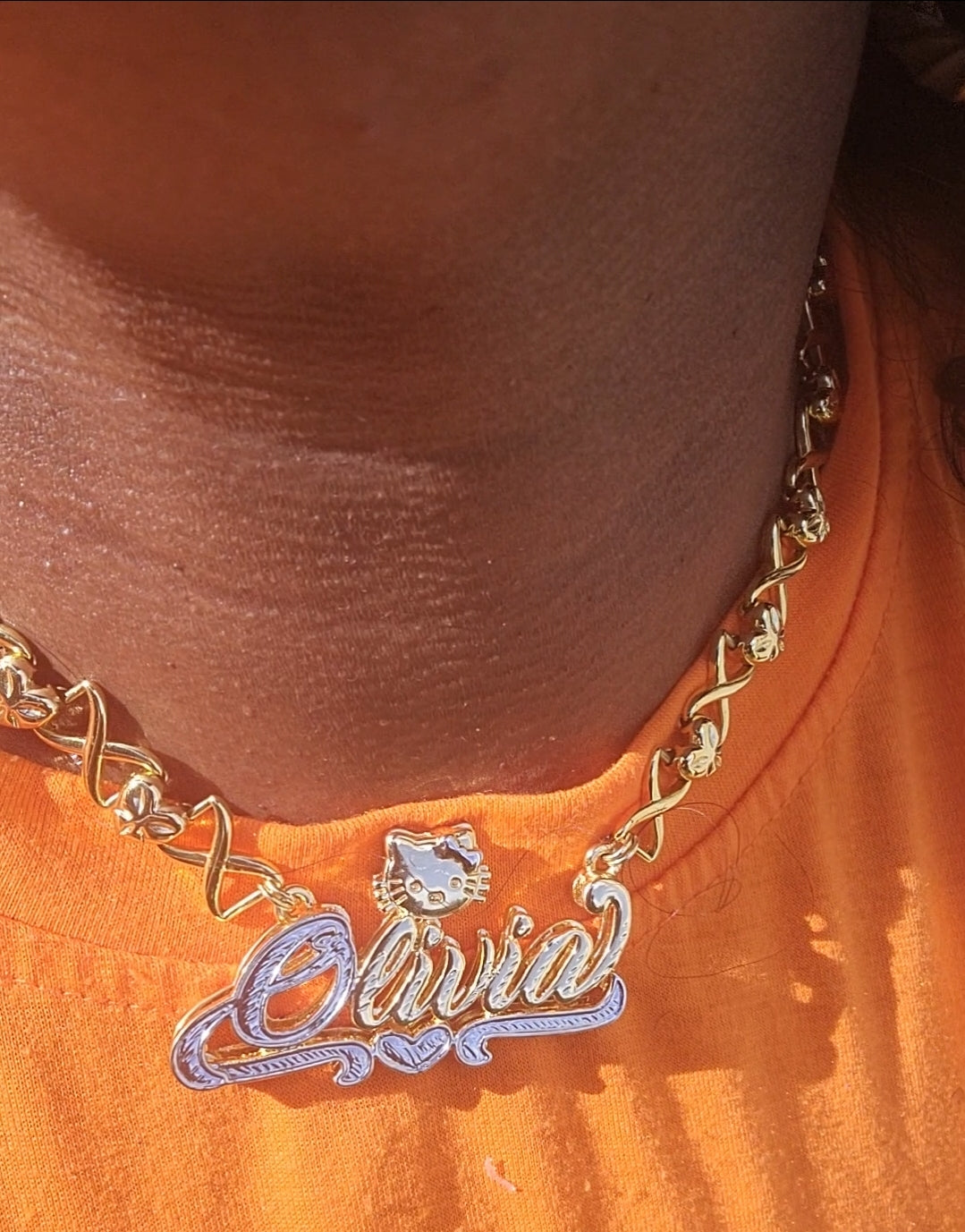 The XOXO Personalized Set Double Plated Necklace with Diamond Cut Hearts elevates your wardrobe with a classic, timeless design. Its 18k gold plating and diamond-cut engravings bring an elegance and sophistication to any look, while its personalized XOXO exquisite design adds a unique and personal touch to your accessories. Perfect for any occasion, this luxurious necklace will capture hearts and attention for years to come.