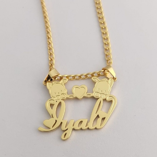Custom Cat Name Necklace – Personalized Cartoon Pendant in Gold | Retro Character Jewelry Gift for Her | Cute Nameplate Necklace
