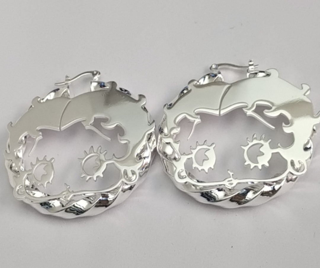 Twisted style bamboo custom designed earrings with Betty Boop. These gorgeous earrings comes in a variety of sizes and three colors will make a great statement Piece to your outfit.