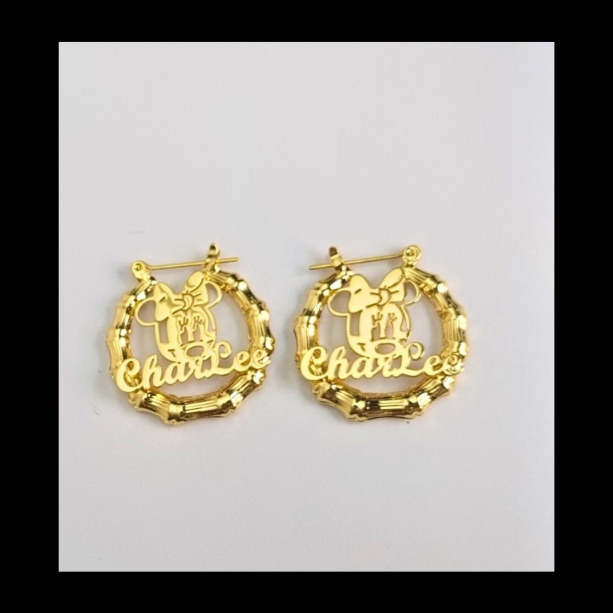 Minnie Mouse Custom Designed Personalized Bamboo 18k Gold Plated Earrings