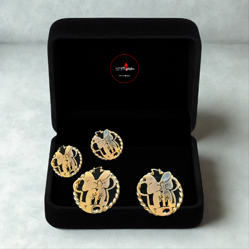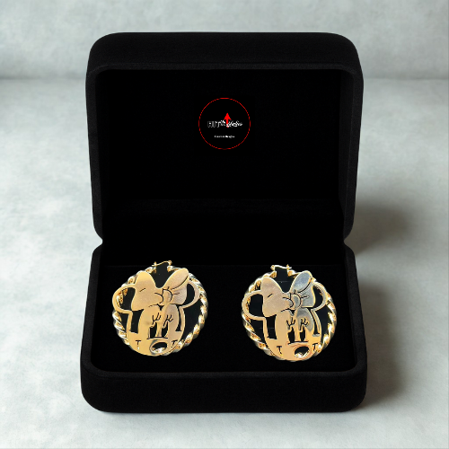 Twisted style bamboo custom designed earrings with Minnie Mouse. These gorgeous earrings comes in a variety of sizes and three colors will make a great statement Piece to your outfit.