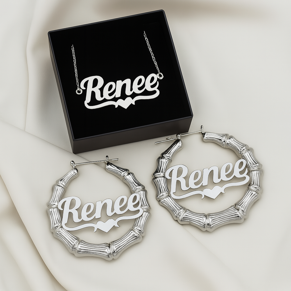 Add a memorable touch to any outfit with this exclusive set of personalized jewellery. Crafted with finesse and impeccable attention to detail, the necklace features a unique heart-shaped CZ pendant that can be customized with your name, while the earrings sport a beautiful round-shaped design added with cz stones with the same personalization. An exquisite addition to your collection, this set is perfect for those special occasions.