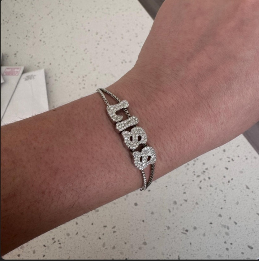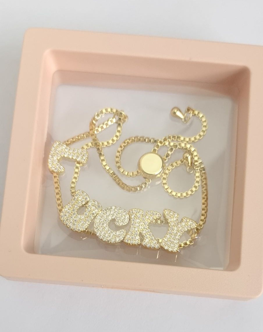 CZ Bubble Letter Personalized Bracelet with Strawstring